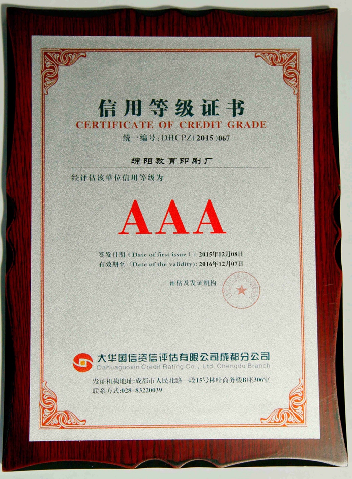 信用等級(jí)證書
