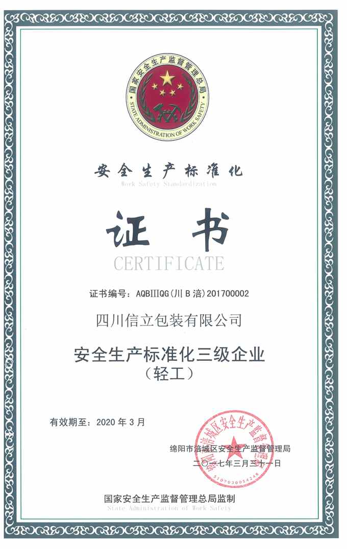 安全三級(jí)達(dá)標(biāo)證書