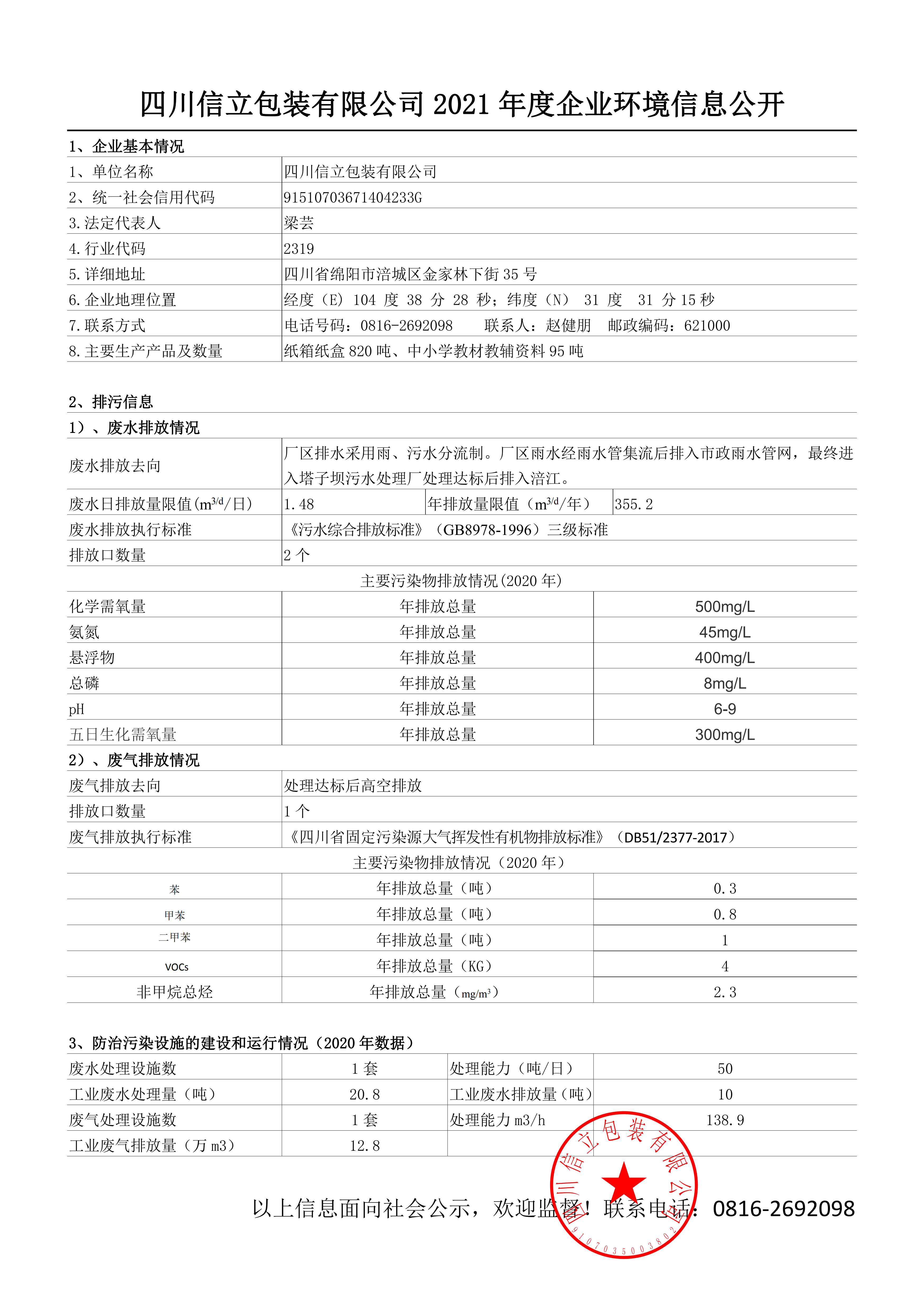 四川信立包裝有限公司企業(yè)環(huán)境信息公開(kāi)